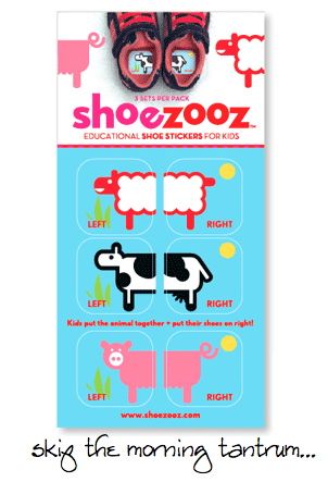 It's one of those nifty little ideas. A simple one. One that makes your harried, chaotic morning just a little easier. One of those ideas that you wish YOU had thought of first.Is this scene familiar: You're ten minutes late and every time you turn around your toddler has taken off her coat. You call over and ask her to pick-up her shoes so that you can put them on. She INSISTS that she can do it herself and begins tugging furiously at the shoes, frantically trying to pull them on... to the wrong feet. When you try to intervene, you're pushed away. After all -- she can "do it herself."
